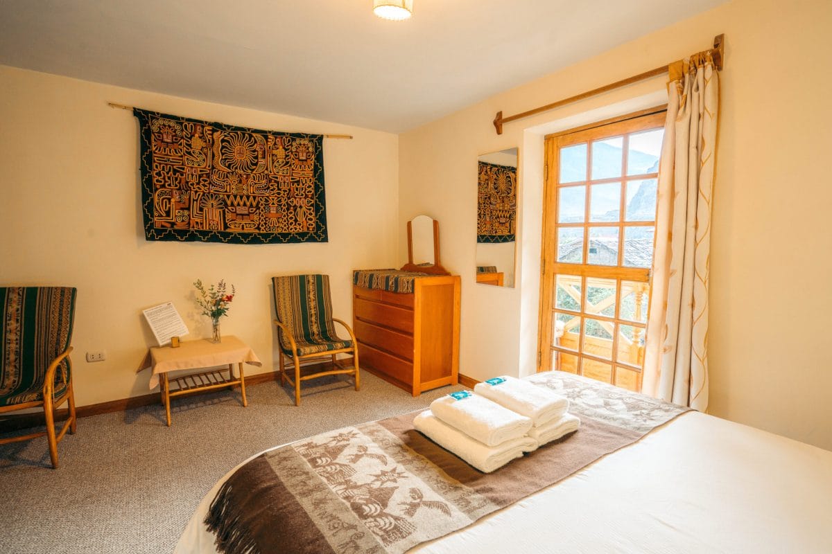 Je verblijft in een charmant hotel met een fijne tuin met hangmatten, fruitbomen en inheemse vogels. Het hotel is gelegen aan de voet van de heilige berg Apu Pinkuylluna en heeft prachtig uitzicht op de ruïnes rondom. Het ligt heel rustig aan het eind van het historische centrum. Om er te komen moet je een paar minuten lopen over de typische hobbelige keienstraatjes: auto’s kunnen hier niet komen. Het hotel heeft een klein restaurant waar je ook ‘s avonds terecht kunt als je de deur niet meer uit wilt.