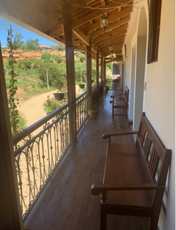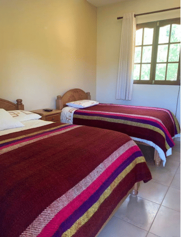 Je verblijft in een klein hotel in een gebouw met koloniale sfeer en een rustieke uitstraling. Het is ingericht met authentieke meubels en bevindt zich op een rustige locatie in de natuur aan de rand van het dorp. Je wordt hier door de behulpzame gastvrouw ontvangen alsof je familie bent. Vanuit de kamers heb je prachtig uitzicht op de omgeving.